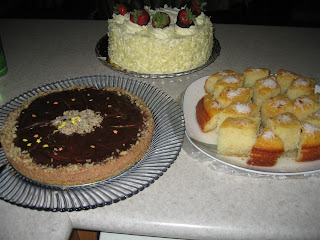 Cumartesi akşamı Aysun un hazırladığı nefis ve çok çeşitli yemek sonrasında benim cheese kek in yaninda Şule nin yoğurt tatlısı, Peri nin (herzaman yaptığı ve kimsenin onun gibi yapamadığı minik ekler pastalarını o gün ilk kez tutturamayınca) pastacıdan aldığı nefis beyaz krem li ve çilekli keki vardı..Her biri ayri güzellikteki tatlı ve kekleride afiyetle yemiş saatin geceyarısını geçmesi nedeni ile uykulu gözlerle birbirimize aralık ayında görüşmek dileği ile iyi geceler demiştik..