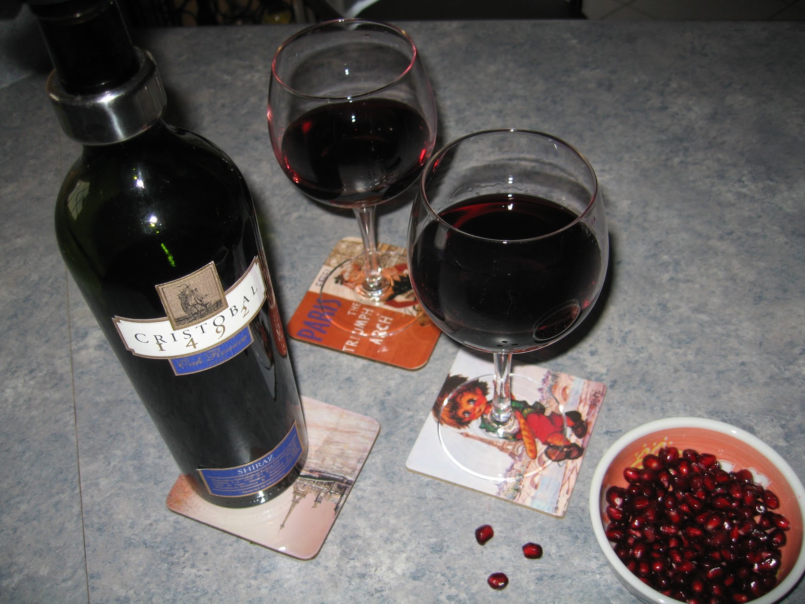 Hafta sonları çok çabuk geliyor sanki , hafta içinin yorgunluğunu cuma geceleri bazen birsey yapmadan sakin ce kendimize göre geçiriyoruz ..ama geneldede bazen son dakika misafirliği olunca gırgır şamata bira ve şaraplarımızla pijama party side yapmiyor değiliz..Bu gecede oyle zamanlardan biri...biraz çerez, biraz sebze, biraz sos lu ekmek ve şarap ve bira..hafta sonuna güzel birbaşlangıç.. Bu gece için seçtigim şarap CRISTOBAL 1492 Oak Reserve 2008