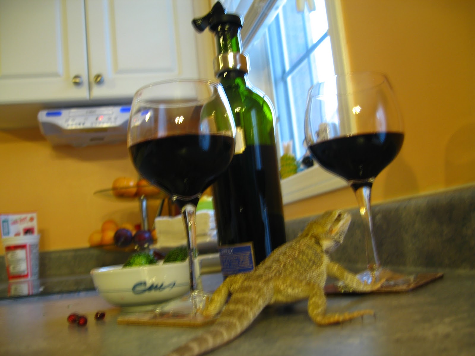 Biz şaraplarımızı bardaklarımıza doldururken birde küçük bir misafir geldi şarabımızın yanına..Küçük lizard ımız Myke )
