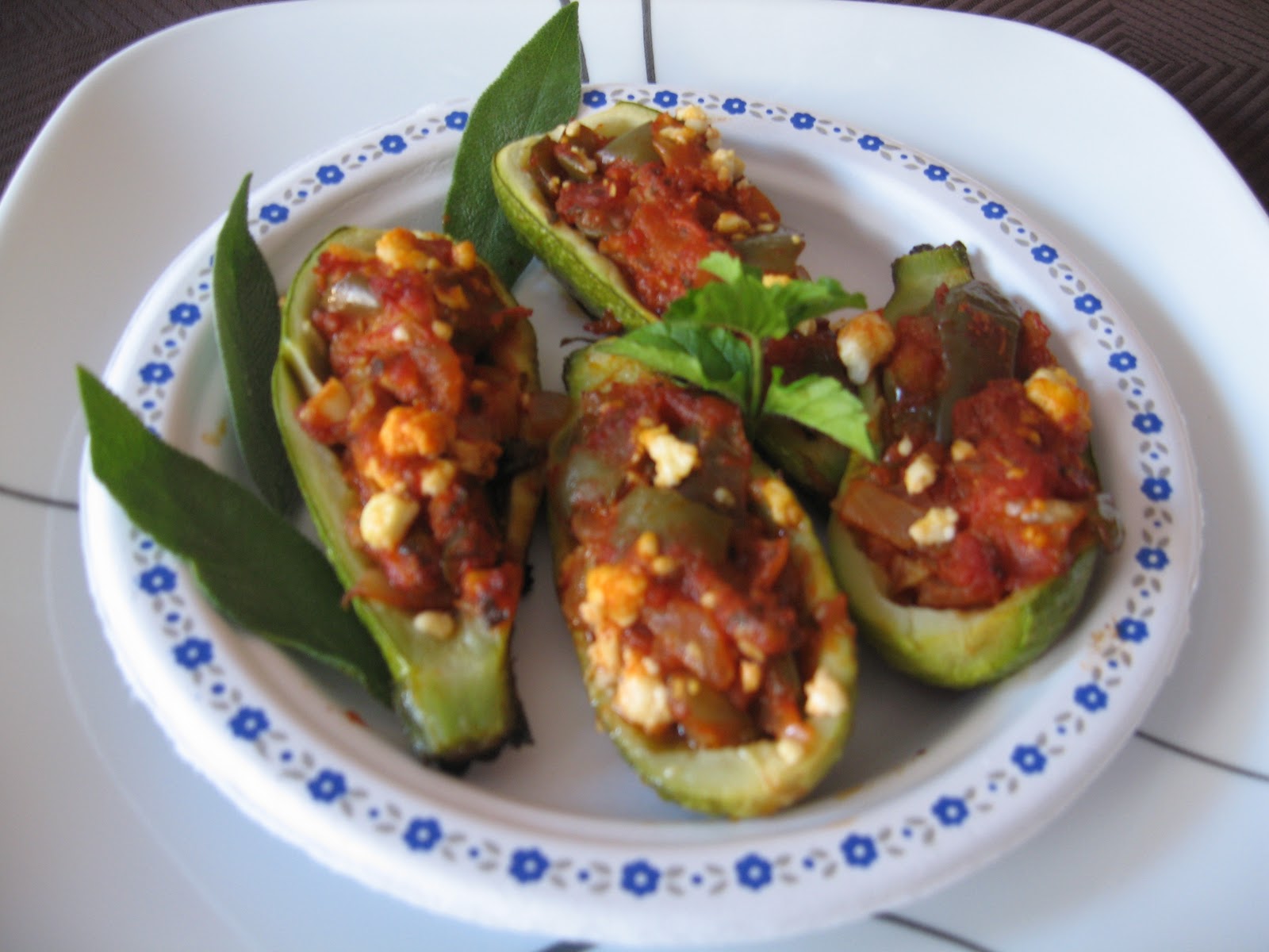 Bu akşam için de evde bulunan küçük kabaklarla lezzetli bir yemek yaptım...İmam bayıldıya benziyor biraz..ama kullanılan beyaz peynir farklı bir tat katıyor..